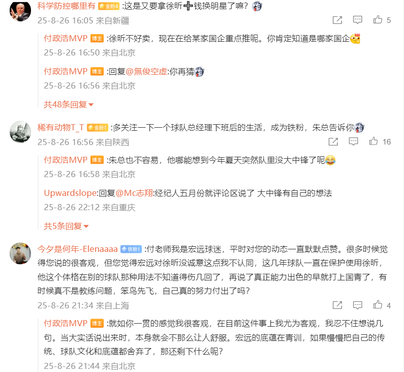 网友们也在纷纷猜测,广东男篮究竟在向哪家国企俱乐部推销徐昕,有猜北控的,也有猜首钢的,但付政浩并没有透露是哪家。
